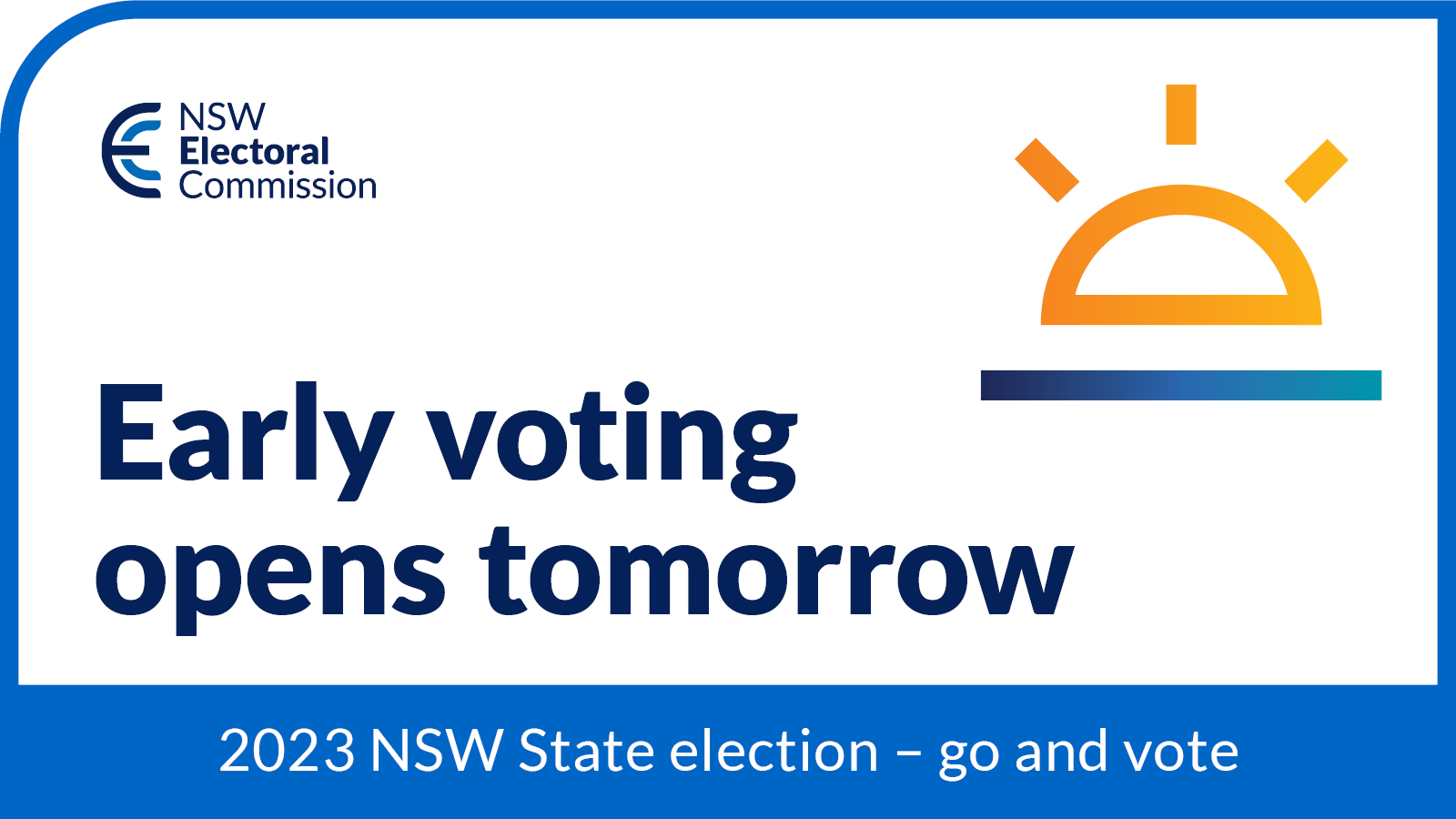 Web The NSW state election is on Saturday March 25. Web 23 hours agoEarly voting open with NSW elections a week away By Farid Farid Updated March 17 2023 - 938am first published 930am Polling booths around NSW will be a hive of democratic activity in the coming week with voters eligible to cast their ballots early for the March 25 contest. Web If you are eligible to vote early or pre-poll you can visit an early voting centre or pre-poll venue in your electorate ward or council area and cast your vote.